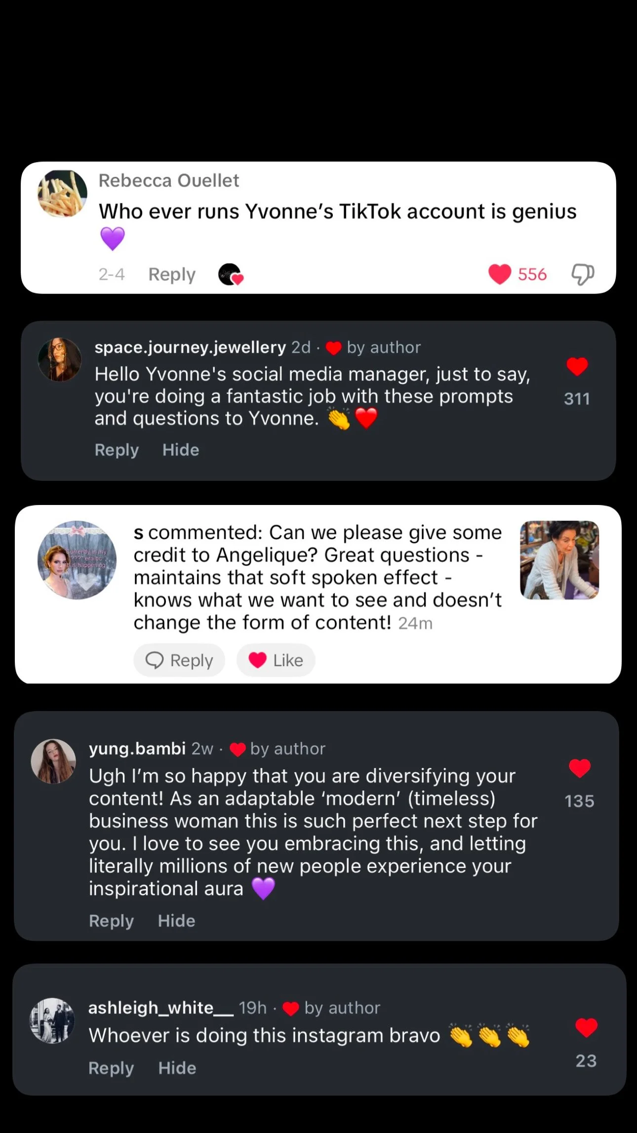 Since joining Yvonne LaFleur in November 2024, I have successfully grown the brand's Instagram (starting at 2,000 followers), TikTok (0 followers), and Facebook (2,000 followers) accounts to nearly 300,000 followers across platforms within just six months - entirely through organic strategies, without the use of paid advertising. By executing an aggressive social media marketing approach, I have consistently captured audience attention, driving multiple viral videos that have significantly increased brand visibility.